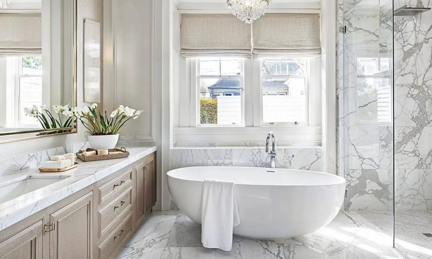 • Marble-Look Tiles: Add a touch of luxury to your bathroom with tiles that mimic the elegance of natural marble. These tiles offer timeless appeal and work beautifully in both classic and contemporary settings.